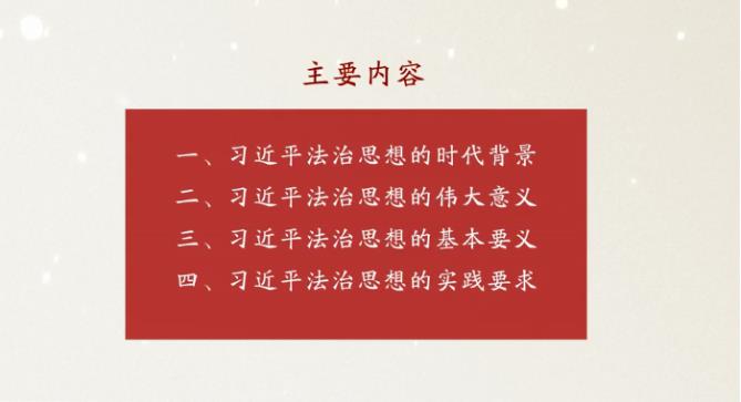 培訓中,全體干部員工集中收看了中國人民大學法學院教授、博士生導師馮玉軍主講的《以習近平法治思想為指導 全面推進依法治國》視頻。馮玉軍教授從習近平法治思想的時代背景、偉大意義、基本要義、實踐要求四個方面,詳細闡釋了習近平法治思想的深刻內涵。通過學習培訓,使與會人員進一步深化了對習近平法治思想的理解和認識,不斷增強了“四個意識”、堅定了“四個自信”、做到“兩個維護”,不斷把學習貫徹習近平法治思想引向深入。