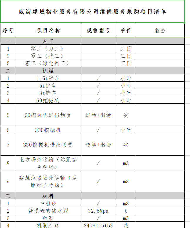 威海建城物業(yè)服務有限公司維修服務采購項目