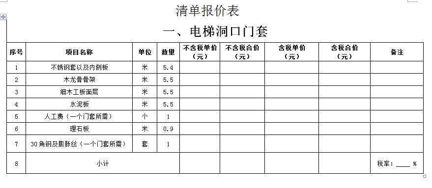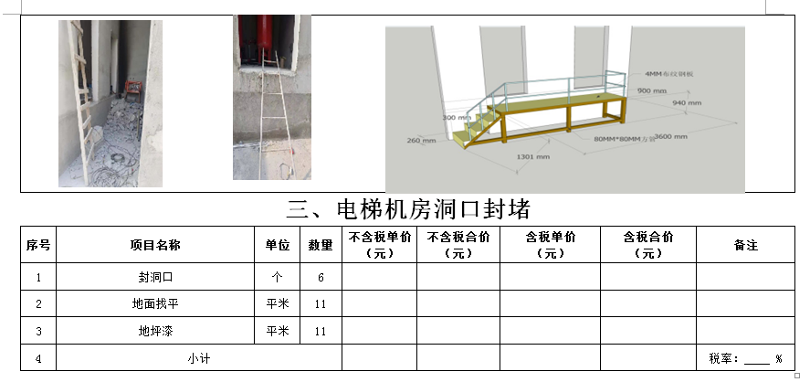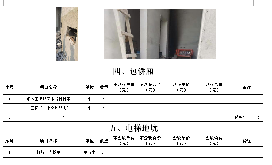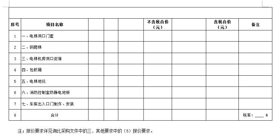 (5)采購(gòu)范圍:電梯洞口門套、鋼爬梯、電梯機(jī)房洞口封堵、包轎廂、地面找平、地下車庫(kù)出入口真石漆等(詳見(jiàn)清單)等相關(guān)工作,具體內(nèi)容詳見(jiàn)采購(gòu)文件。